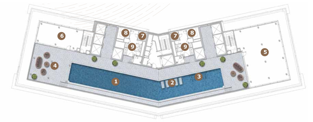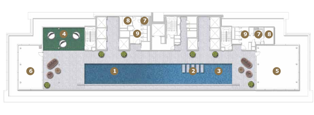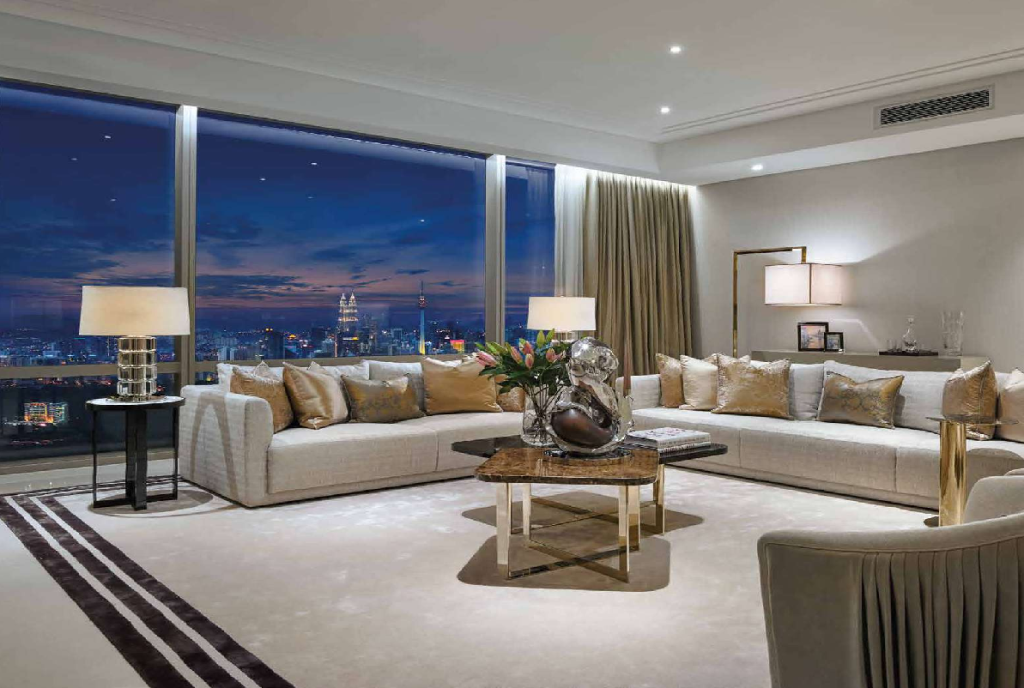 A range of luxurious facilities, including a 50-metre infinity pool, jacuzzi, sauna, steam room, BBQ area, gymnasium, yoga deck, and a sky lounge offering panoramic views of KL city.